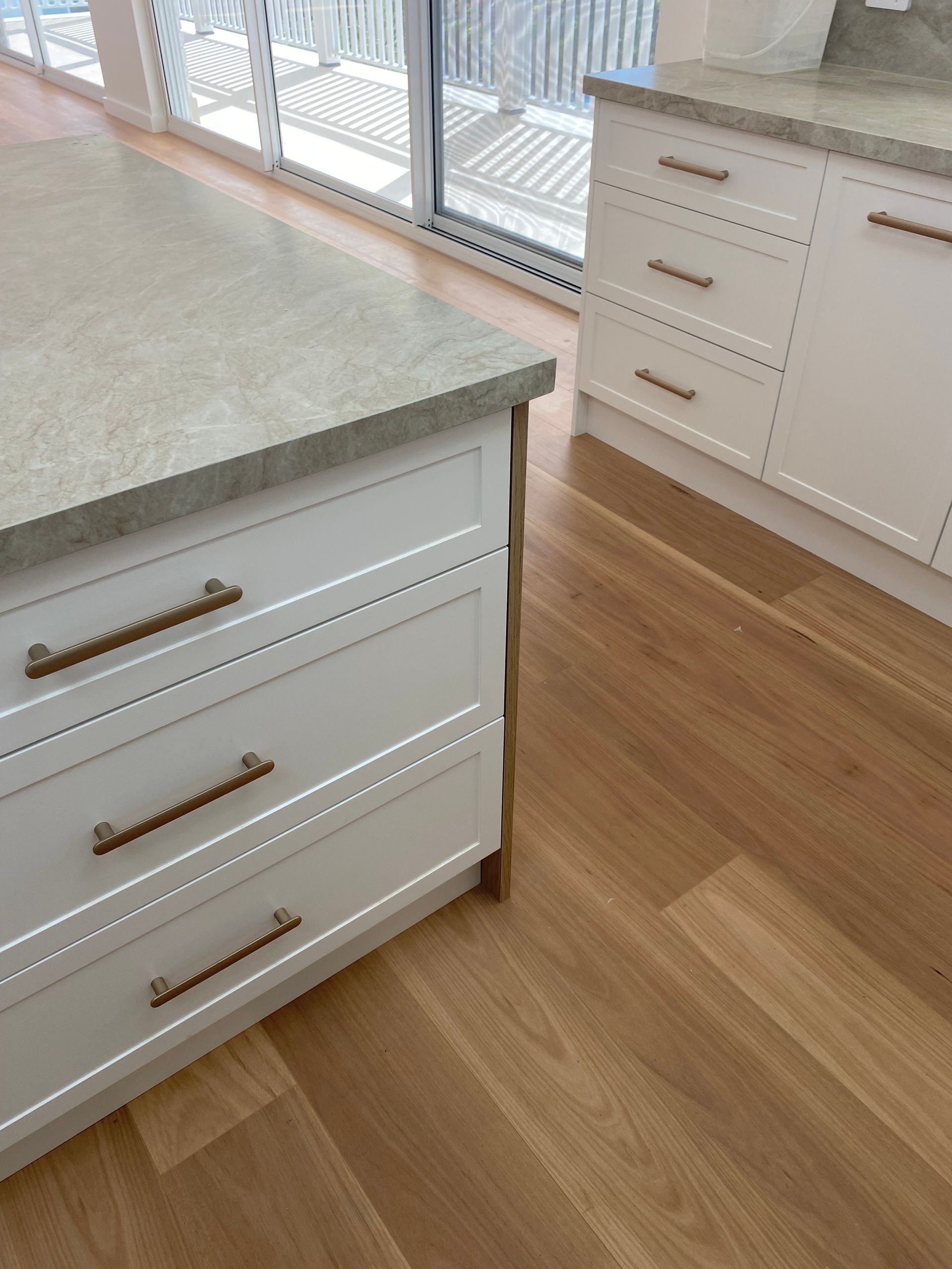 Blackbutt flooring has long been a favourite for coastal-style homes across the Central Coast, and for good reason. Its warm, honey-toned grain carries the effortless ease of coastal living without feeling rustic or overdone. It pairs beautifully with white cabinetry, natural stone, and the kind of layered coastal palette this kitchen was built around.